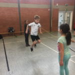 Klasse 3 nahm am Projekt „Skipping Hearts“ der Deutschen Herzstiftung teil. Die Kinder lernten, wie man sich mit einem Springseil fit halten kann, und kamen ordentlich ins Schwitzen.