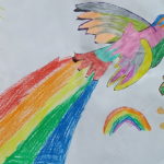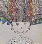 welch ein Zufall: zwei Klassen (Klasse 2 und 3) gestalteten gleichzeitig künstlerische Gesichter (Februar/März 2022)