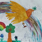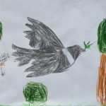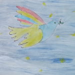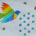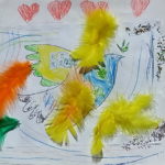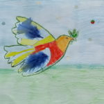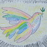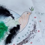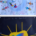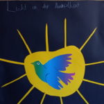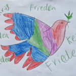 Aus Anlass des Kriegs in der Ukraine gestalteten Kinder aller Klassen Friedenstauben als Botschaft für den Frieden.