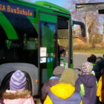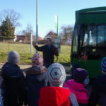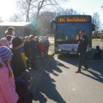 Alle Klassen nahmen im April an der Busschule des RVHI teil. Die Kinder erfuhren, wie weit ein Bus den Gehweg an der Haltestelle überstreift, wie weit bei einer Vollbremsung Dinge durch den Bus fliegen und was der „tote Winkel“ ist.